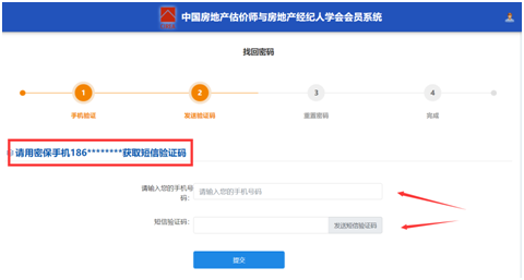 第三步:输入首次注册时使用的手机号码及短信验证码