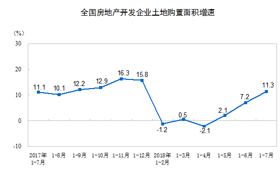 1-7月份,房地产开发企业土地购置面积13818万平方米,同比增长11.3%,增速比1-6月份提高4.1个百分点;土地成交价款6619亿元,增长21.9%,增速提高1.6个百分点。