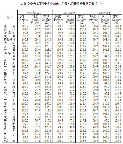2020年1月份70个大中城市商品住宅销售价格变动情况