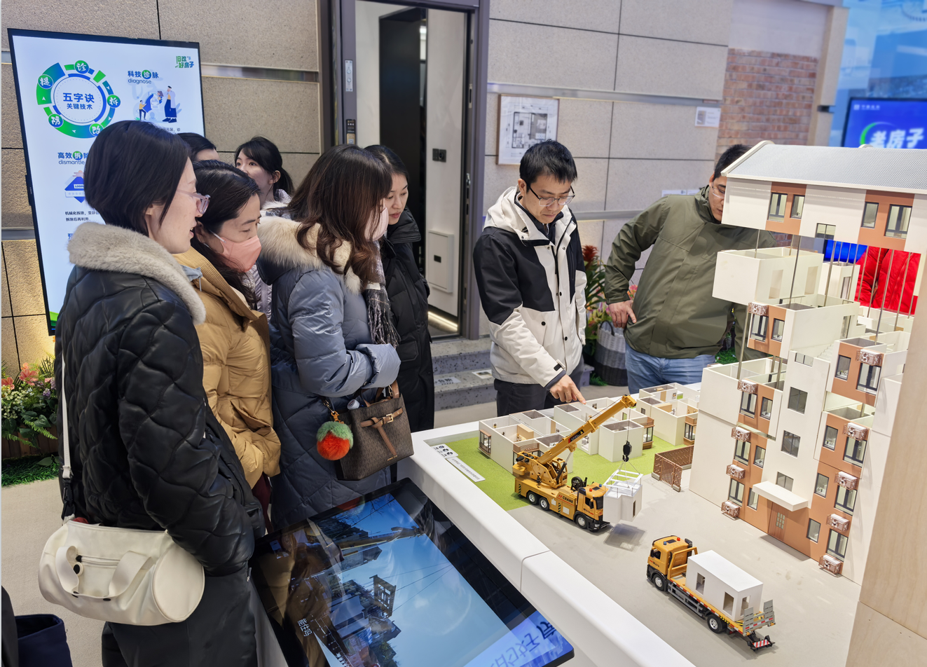 “拓展幸福空间”展厅重点展示新建好房子和旧改好房子的多种方案,列举了支撑好房子建设的绿色低碳建筑产品体系。智能家居、自动化控制、语音识别等新兴技术的应用,使得房屋安全耐久、健康舒适、绿色低碳、智慧便捷,全面满足了人民对好房子的需求,提升了居住体验的智能化和个性化。党员们亲身体验了智能家居系统,通过语音控制、自动调节等功能,深刻感受到了科技为生活带来的便捷与舒适。